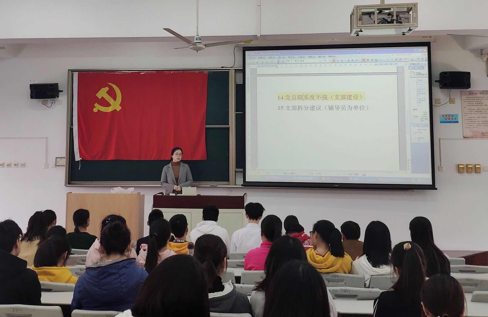 与会人员深入讨论了学院党建工作和支部工作存在的问题。徐璐、梁郐方对与会人员提出的问题耐心逐一解答并提出要求。一是希望各位党员、预备党员、积极分子能够发挥模范带头作用,积极参加党日活动,增强党建工作的积极性,充分发挥党支部的战斗堡垒作用。二是要求各位党员、预备党员、积极分子及时关注党支部发布的信息,加强与党支部的信息沟通,充分发挥党支部的引领作用。三是要注重党员的思想汇报检查和党员之间的交流与联系,不仅要提高个人思想的先进性,更要增强党员团体的凝聚力与向心力。