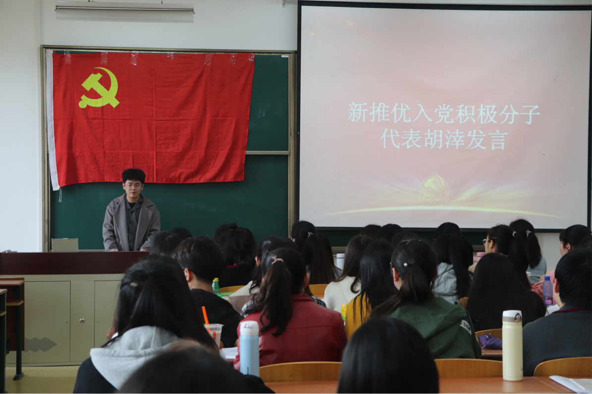 入党积极分子代表胡涬同学发言,他表示在接下来的党课学习中,将会严格要求自身,发扬经济管理学院入党积极分子的良好风貌,为身边同学做出良好榜样。