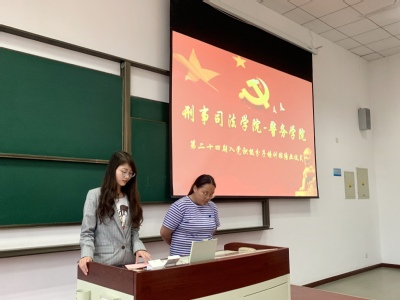 4月9日下午,刑事司法学院-警务学院分党校举办第二十四期入党积极分子培训班举行结业仪式暨表彰大会。刑事司法学院-警务学院党总支书记胡冠时、党总支副书记徐海琨、专职组织员李晓敏出席结业仪式,培训班全体学员参加,活动由李晓敏主持。