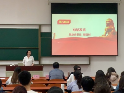 胡冠时总结发言。她首先对顺利结业的学员及优秀学员表示祝贺,并希望各位学员一是要继续学习,学习永远在路上;二是学而思,把自己的思考转化为自己的行动指南;三是要学而行,要把学习到的党的有关知识落实在生活、学习和工作中。本期培训班自开班以来共开展3次专题课程、1次小组外出考察活动及1次实践考察汇报,在课程内容及形式等多方面进行了革新。(张昊撰稿 洪若妍摄影)
