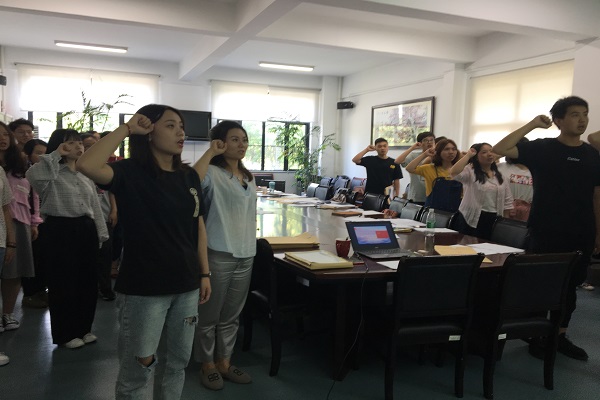 会议最后,支部全体党员在支部副书记郑菁的带领下面向党旗重温入党誓词。通过这次主题教育,支部全体党员更加深刻领会了入党时的铮铮誓言,更加牢记了自己的初心与使命。(杨朝森撰稿 刘凡赫、孙雨钘摄影)