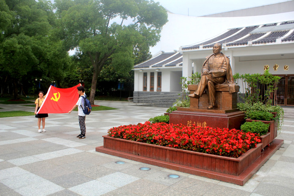 到达纪念馆后,大家整齐列队,在伟大的无产阶级革命家、政治家陈云同志铜像前,面向鲜艳的党旗,庄严地宣读入党誓词。在这神圣的时刻,每位党员慷慨激昂的宣誓声,坚定的眼神,彰显着他们为共产主义奋斗终身的决心。
