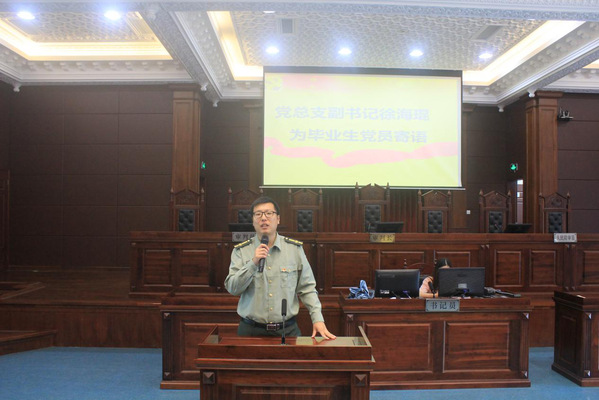 在毕业生党员专题党课上,徐海琨祝贺各位党员顺利完成学业,即将开启人生新征程。他以“不忘初心,砥砺前行”为主题进行授课。他从入党初心谈起,与在座的党员一起回忆入党时的拳拳真心。强调大家要牢记初心,勇担党员责任。其次,牢记“四个自信”。不断加强党性修养,做理想信念坚定的共产党员。再次,常怀感恩之心。心中要明晰母校和师长同学的关怀,做好自己,为上政增光,为党旗添风采。最后,工作生活向善向上。他勉励大家做到德法兼修、奋发图强,用实际行动发挥党员的先锋模范作用。