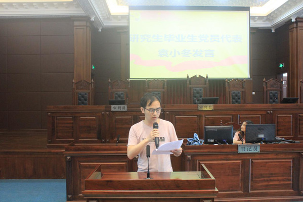 芳菲未歇,夏木可人。为迎接“七一”党的生日,做好毕业生党员离校工作。6月28日上午,法律学院于B4模拟法庭开展“不忘初心跟党走,砥砺奋进新征程”法律学院迎“七一”座谈会暨毕业生党员专题党课。法律学院党总支副书记徐海琨,2019届本科生、研究生毕业党员参加活动。