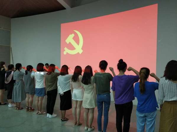 刘逸君在主持时说,今天对于所有2015级毕业生党员来说,是一个非常重要的日子,毕业典礼之后,同学们即将挥别母校。而作为毕业生党员,应该在未来的工作岗位上继续发光发热,发挥模范带头作用,为母校争光。随后,全体毕业生党员重温入党誓词,面向党旗庄严宣誓,提醒自己不忘初心、牢记使命,以一名合格党员的标准继续前行。