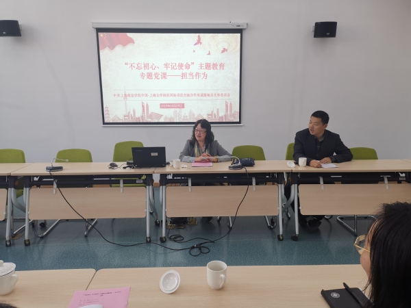 10月29日上午,中国-上合基地党总支副书记王晓宇在基地综合楼103室作题为“不忘初心、牢记使命”主题教育——“担当作为”专题党课。