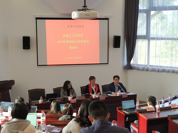 12月30日至31日,市教卫工作党委2019年党内统计年报审核培训班在我校中国-上合基地举办。来自上海市各高校党内统计年报审核工作具体负责同志共60余人参加,市委组织部汤晨泓同志、市教卫工作党委组织干部处陈皇同志莅临指导。