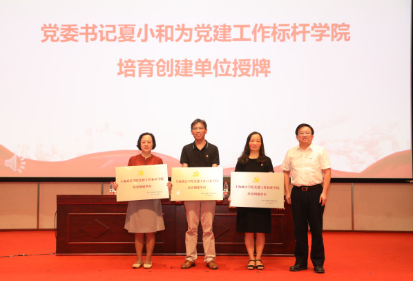 会议宣读了2020年市教卫党委系统党建研究课题成果获奖名单、2020年市教卫党委系统党建研究会立项课题名单、2020年市教卫党委系统统一战线调查研究与理论研究课题立项名单、365英国上市公司党建课题立项名单、学校第一季示范党课立项名单,十佳优秀组织生活案例、基层党建创新案例获奖名单,党建工作样板支部培育创建单位、“双带头人”教师党支部书记工作室、党建工作标杆学院培育创建单位名单。夏小和、刘晓红、潘牧天、胡继灵分别为获奖个人、集体颁发证书、授牌。