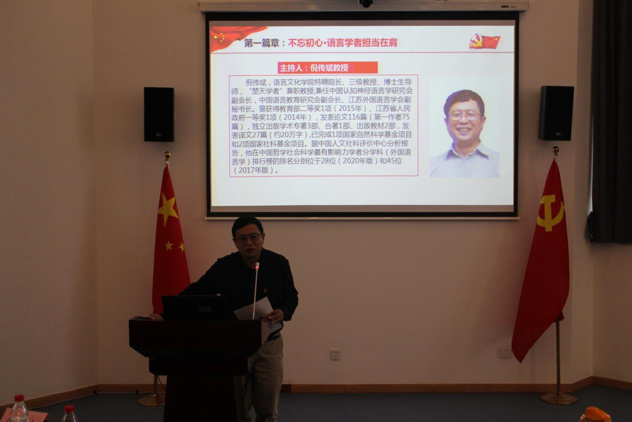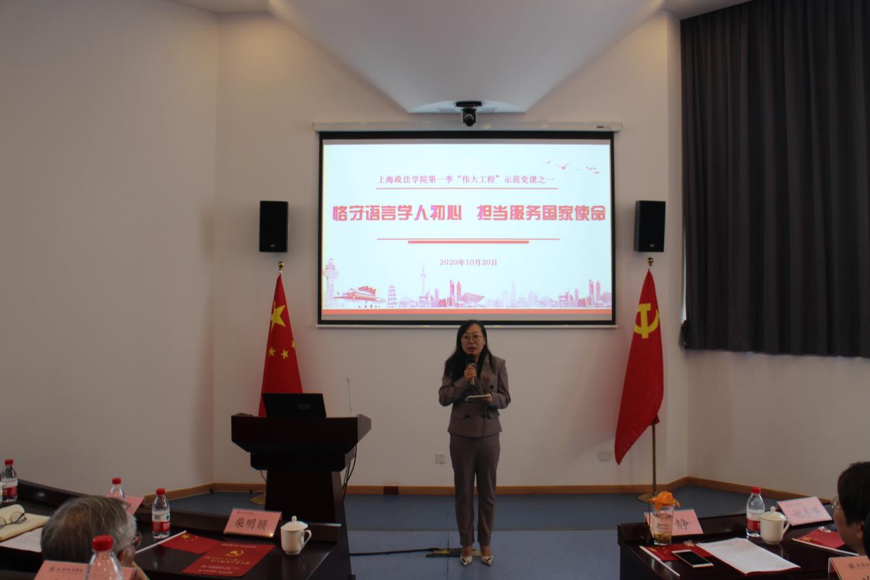 10月20日,365英国上市公司第一季“伟大工程”示范党课开讲,语言文化学院以“恪守语言学人初心,担当服务国家使命”为主题,在上合培训基地113会议室进行首场讲演。校党委常委、组织部统战部长王静,上海外国语大学高级翻译学院创始人柴明熲、语言文化学院特聘院长倪传斌、党总支书记姚善英、各学院书记、组织员、上合基地和学院师生党员出席此次会议。党课由语言文化学院党总支副书记周欣主持。