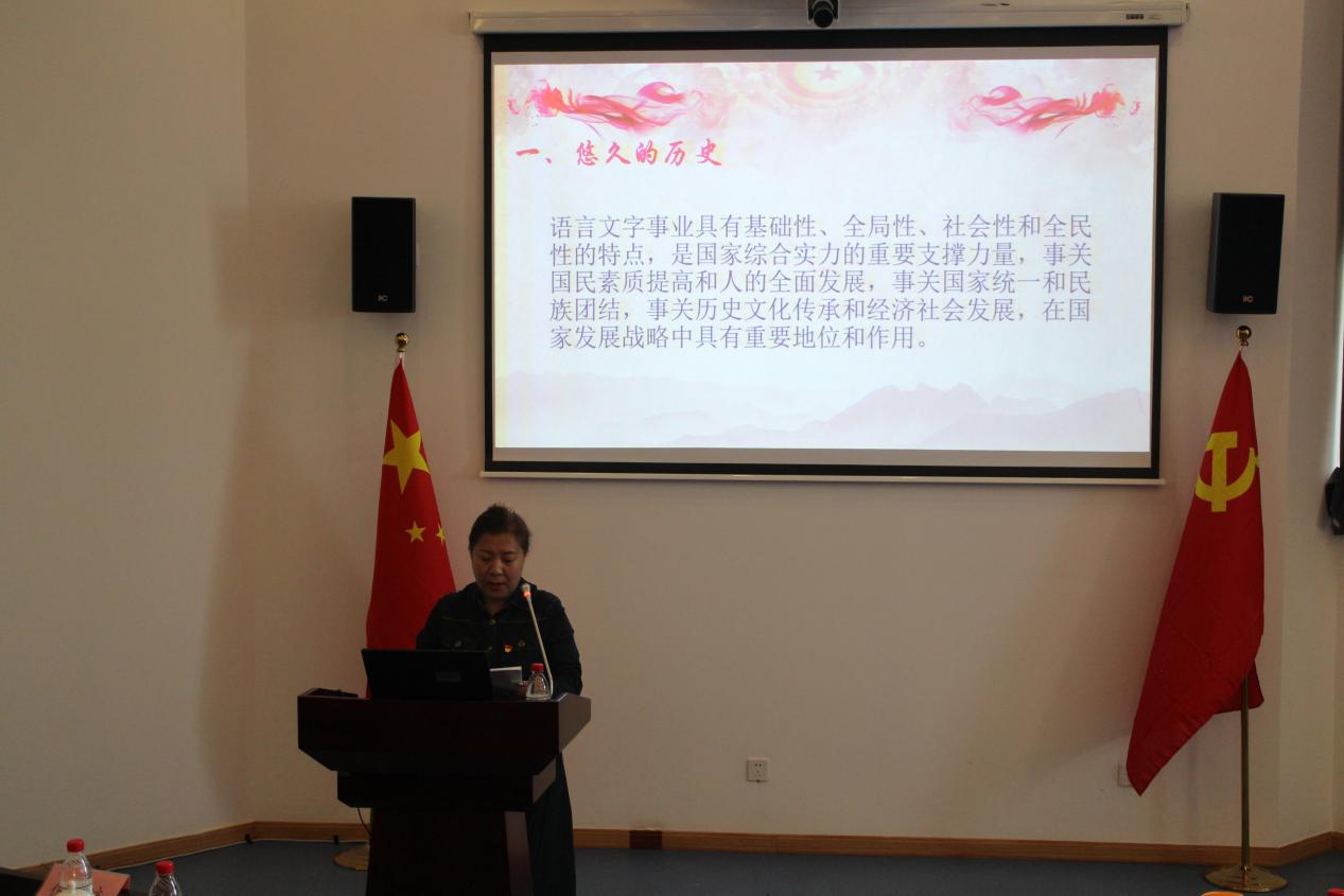 微党课《语言文字促建设》以新中国成立之初、改革开放、21世纪三个阶段为时间节点,阐述了不同时期新中国语言文字的发展历程,中文教工党支部书记朱凯试图通过原创性的理论探讨,探索建设面向世界、尊重中国语言实际的语言学学科体系、学术体系、话语体系,探讨语言文字与社会建设发展之间的密切联系。