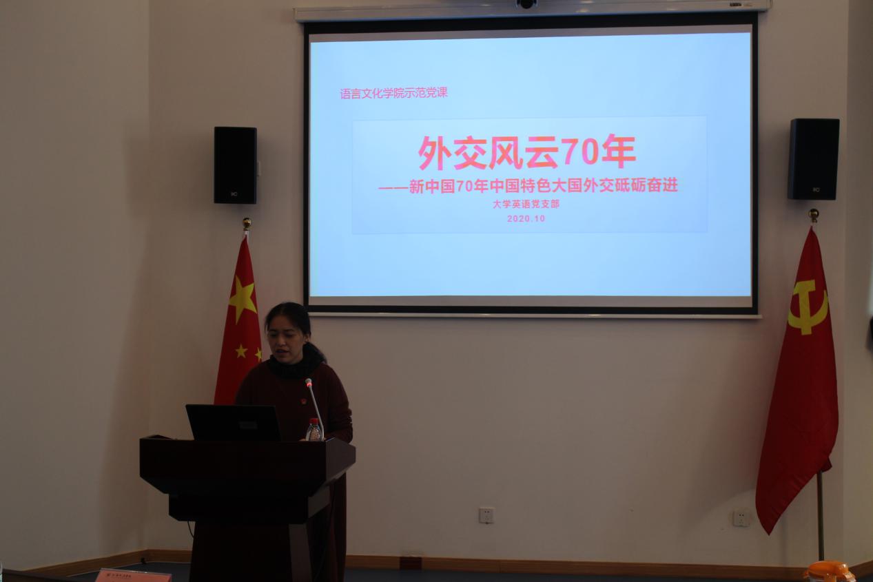 新中国成立的70余年,是一部波澜壮阔史,也是中国外交风云变幻的70年。大学英语教工党支部教师黄红伟结合“四史”发展,阐述《新中国70年中国特色大国外交砥砺奋进》,探讨中美、中俄、中欧关系在历史脉络中的发展转变,凸显“亲、诚、惠、容”周边外交理念。