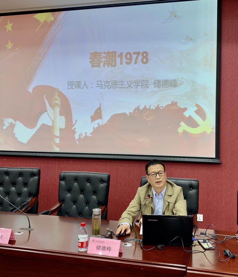 随后,储德峰由习近平总书记在庆祝改革开放40周年大会上的重要讲话引入题为“春潮1978”的专题讲座。1978年作为20世纪中国第三次历史剧变发生的一年,改变了中国命运和世界格局,无论是在党史、新中国史,还是改革开放史以及社会主义发展史中,都具有非常重要的地位和意义。储德峰从春潮暗涌、春潮激荡、春雷绽放、春潮破堤四个部分引导学员们从历史情境中了解1978年中国面临的三大主要问题以及中国共产党对这些问题的“科学认识”“准确把握”“正确解决”,深刻揭示了1978年划时代意义和重要地位。