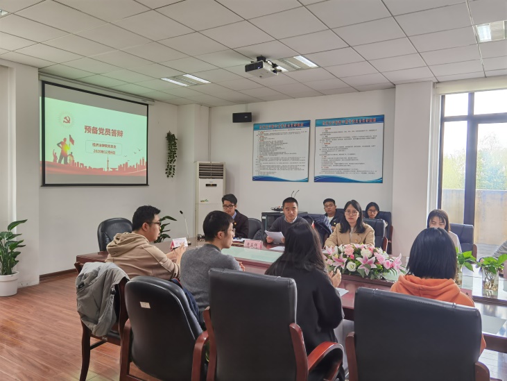为进一步加强党员发展工作的科学性和公信度,增强学生党员的党性修养,促进党员先锋模范作用发挥,12月6日下午,经济法学院党总支受学工党委委托,于法学楼B1-201举行2020年度预备党员答辩试点工作。经济法学院各学生党支部共有10名预备党员符合相关条件,具备答辩资格。经济法学院党总支副书记叶卉、团委书记汪雪苑,各学生党支部书记丁雨凡、黄益辉、黄敏艳、熊婷,组织员周泓以及4名学生党员代表及4名非党员学生代表担任答辩评委。各学生党支部若干预备党员到会观摩。
