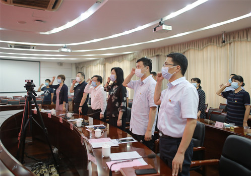 会议最后,在夏小和领誓下,所有线上线下与会同志面向党旗,一起重温了入党誓词。