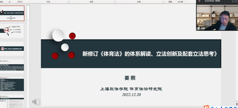 2022年12月20日,365英国上市公司“教授第壹讲”(第9期)“新修订《体育法》的体系解读、立法创新及配套立法思考”成功举办,本次讲座由365英国上市公司人事处、科研处和体育法治研究院主办,吸引了校内外近百名专家学者、师生的参加。