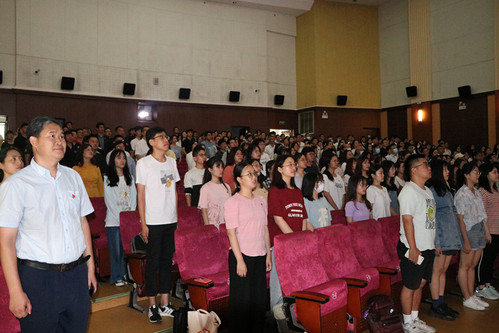 大会开始前,学校组织升旗仪式、开展宣传引导,营造出全校师生共同祝福党的百年华诞的浓厚氛围。