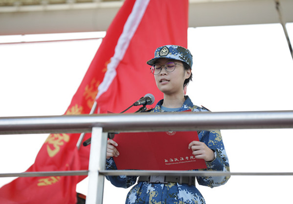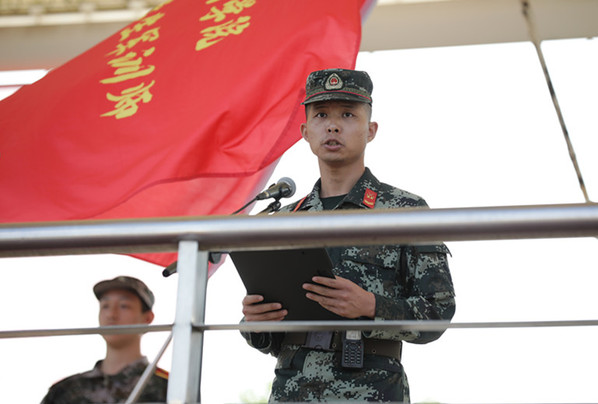 校学工部副部长、人民武装部副部长徐丽红主持入营式,学工部部长、人民武装部部长张军介绍了军训整体安排,陈宪法为参训学生代表授旗。参训学生代表、教官代表分别作了发言。