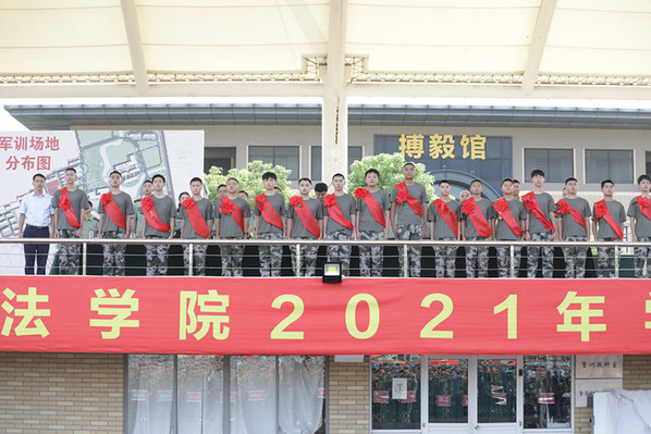 此次入营式还安排了一个特别环节——全场师生欢送2021年秋季入伍学生。高志刚为他们佩戴大红花。“我们将从上政出征,守护红色江山,我们向祖国承诺,但使龙城飞将在,不教胡马度阴山”,入伍学生的豪迈誓言,激起全场师生的热烈掌声。