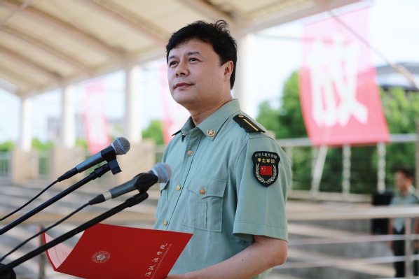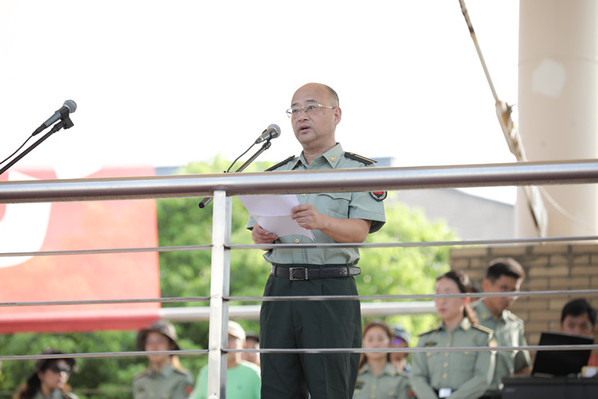 军训师师长、校党委副书记刘刚出席入营式并作动员讲话。
