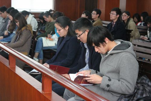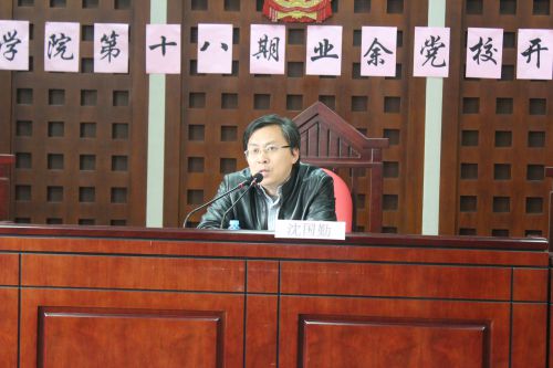 3月25日下午,法律学院第十八期业余党校于在信教模拟法庭举行开班仪式。出席开班仪式的有法律学院党支部书记沈国勤、法律学院院长助理闯晓燕,开班仪式由学生党支部书记丁明强主持。本期党校共有学员48名。在雄壮的《国际歌》歌声中开班仪式拉开了帷幕。