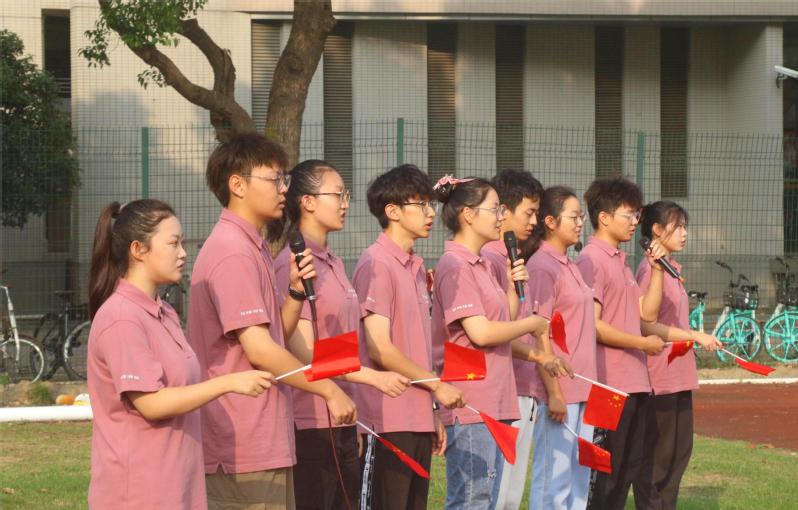 伴随着清晨的朝霞,由我校退伍士兵组成的“军魂团”升起了鲜艳的五星红旗,全体师生面向国旗,唱响国歌,向祖国致以崇高的敬意和深深的祝福。随后,法律学院王子泰等五位同学共同朗诵《祖国颂》,用铿锵有力的青春之音,歌颂祖国的繁荣昌盛。牟雨衡等九位同学带领全体师生合唱《我和我的祖国》,用歌声诉说对祖国的拳拳赤子心。