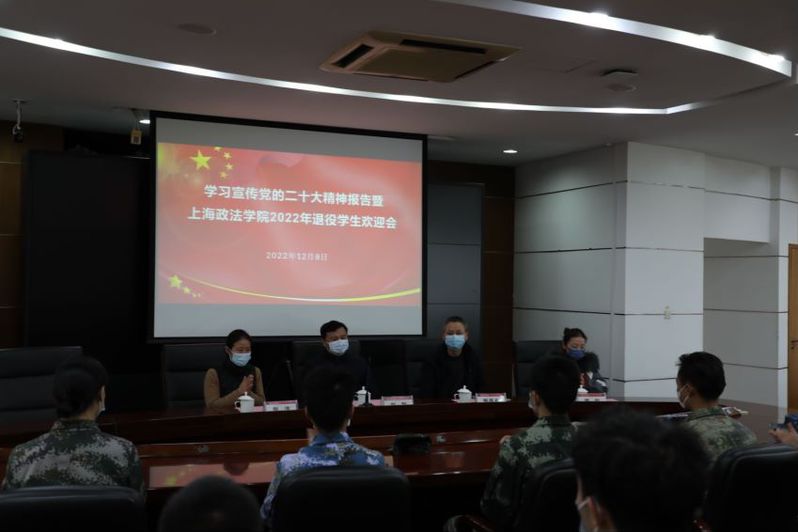 12月8日下午,我校在求实楼513会议室举行学习党的二十大精神分享会暨2022年退役学生欢迎会。校党委副书记刘刚出席会议,教务处副处长陈风光、计财处副处长陶洁,军魂团全体退役学生参加会议。会议由学工部副部长、人武部副部长周怡主持。