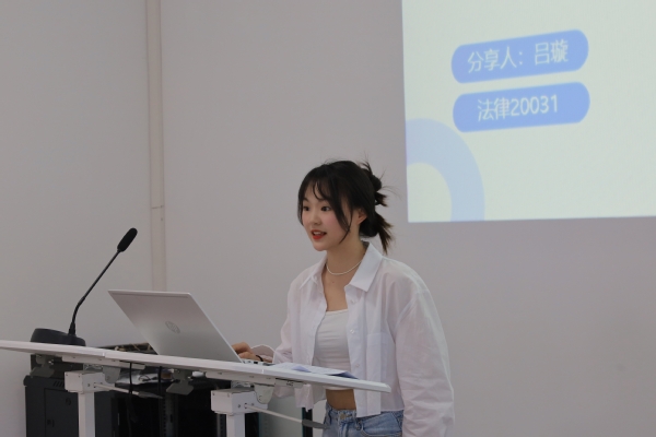 本次活动以“知行合一助腾飞”为主题,学员班四个小组围绕“溯源从流、弘法明德”“弘扬法治精神、砥砺青春力量”“守一而制万物”等主题开展红色法治文化创意分享。陈宁豫、刘畅从策划形式、主题内容、答辩要求等方面给予意见建议。程丹老师以评委视角作赛事介绍、专题解读、获奖案例剖析,引导同学们在社会实践中磨炼意志、砥砺品格、增长才干。2022年“知行杯”上海市大学生社会实践大赛一等奖获奖者吕璇和三等奖获得者许嘉颖以各自获奖作品“走进大山——新预防未成年人犯罪法实施背景下的乡村留守儿童法治教育实践”和“AI满满,爱满满:5G时代下的‘无G’老人,助力老年群体跨越‘数字鸿沟’的科普宣讲活动”为范例进入深入剖析,引导同学们聚焦上海经济社会的重点领域、热点问题,深入开展社会服务和社会调查,提出解决问题的意见和建议。颜涵老师建议同学们从题目优化、内容聚焦、手段创新等方面着手,怀抱梦想又脚踏实地、敢想敢为又善作善成,坚定不移听党话、跟党走,在社会实践中绽放青春。