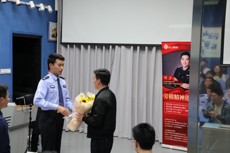许冬警官以燃烧自己照亮他人的“红烛”精神践行着新时代的楷模精神。他引导在座大学生要以“干一行爱一行”的执着,认真仔细做好每一件小事;要沉下心来,脚踏实地、刻苦钻研,练就过硬本领;要培养勤俭、奋斗、创新、奉献的劳动精神,成为懂劳动、爱劳动、会劳动的时代新人。(撰稿徐超、摄影金子荞)