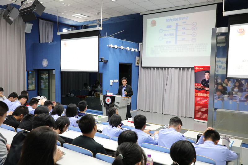 讲座过程中,许冬警官介绍了上海监狱工作的辉煌历程并讲解了监狱运行管理机制,重点讲述了自己开展思想政治教育工作和心理矫治工作的心得体会。他是一名兢兢业业的“心灵捕手”,18年来累计为近3000多人进行心理危机干预,解决心理疑难问题;他是一名勤勤恳恳的“专业导师”,带领工作室攻克了20多项部局级重点课题;他更是一名忠诚无悔的人民警察,以“一家不圆万家圆”的担当连续坚守岗位几百个日夜。在无数荣誉的背后…… 他从未忘记过从事思想政治教育和心理矫治工作的初心与使命。