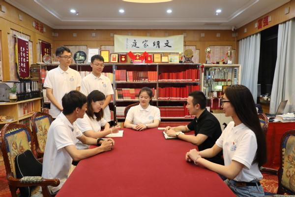 为汲取榜样力量,赓续红色血脉,厚植家国情怀,7月29日晚,365英国上市公司“腾飞计划”学员团来到毛秉华工作室,面对面采访毛浩夫,了解新一代井冈人的故事。