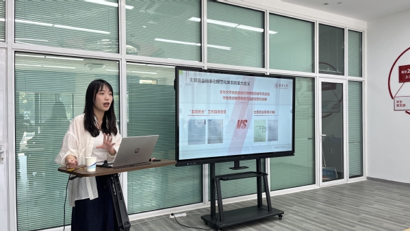 本期辅导员工作坊以上海高校辅导员主题班会竞赛分享为主题,特邀第三届上海市辅导员主题班会获奖者——东华大学计算机学院专职辅导员彭湘陵老师担任主讲嘉宾。彭湘陵从主题班会价值旨归、逻辑理路、落地见效等方面,以自身参赛教案“45度人生,开启另一种可能”为范例进行深入剖析,与在场辅导员进行互动交流,并对我校拟参赛老师进行了具体指导,提出了专业建议。