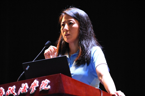 杨扬举止优雅,气质谦和。她用自己比赛经历的一面小棱镜视角折射出对祖国富强繁荣这个大梦想的深沉期盼,朴实无华的家国情怀和追求梦想的顽强毅力更是赢得了同学们的阵阵掌声。她的讲座不仅传达了对上政学子深切的关怀和真挚的期望,也让同学们端正了抓住机遇、迎接挑战、敢于拼搏、砥砺奋进的人生态度。