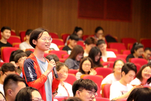 在她身上,那些沉甸甸的荣誉和辉煌,在清清浅浅的时光里不过是一个一个路向标,每个路向标都指向下一次的全力以赴。她用个人演讲的春风化雨和问答互动的温情展示,演绎着新时代中国青年的奋斗英姿与拼搏风采。为时一个半小时的讲座温馨、流畅,不时引来同学们的阵阵掌声,气氛热烈。