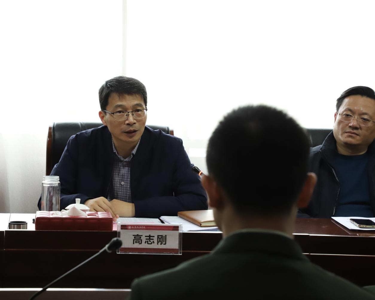 欢迎会上,高志刚代表学校向光荣退伍、载誉归来的同学表示热烈欢迎,对各位同学积极响应国家号召,携笔从戎、献身国防事业表示衷心感谢。高志刚指出,两年前,你们选择了携笔从戎、保家卫国,把爱国之情化为爱国之行,现在作为退役复学大学生,回归校园,一是保持军人优良作风,发挥表率作用。希望在学校继续发光发热,要把军人的优良作风带到今后学习中来,充分发挥宣传带动和示范引领作用,激励更多的学生刻苦学习、报效祖国。二是进一步发挥军人本色,通过军魂团团、国旗护卫队、军训工作等方式在校园内展现军人风采,成为学校学生工作队伍中最可信和最可依赖的学生骨干。三是尽快适应大学学习生活,合理规划学业,在学习和生活中充分发挥示范引领作用。