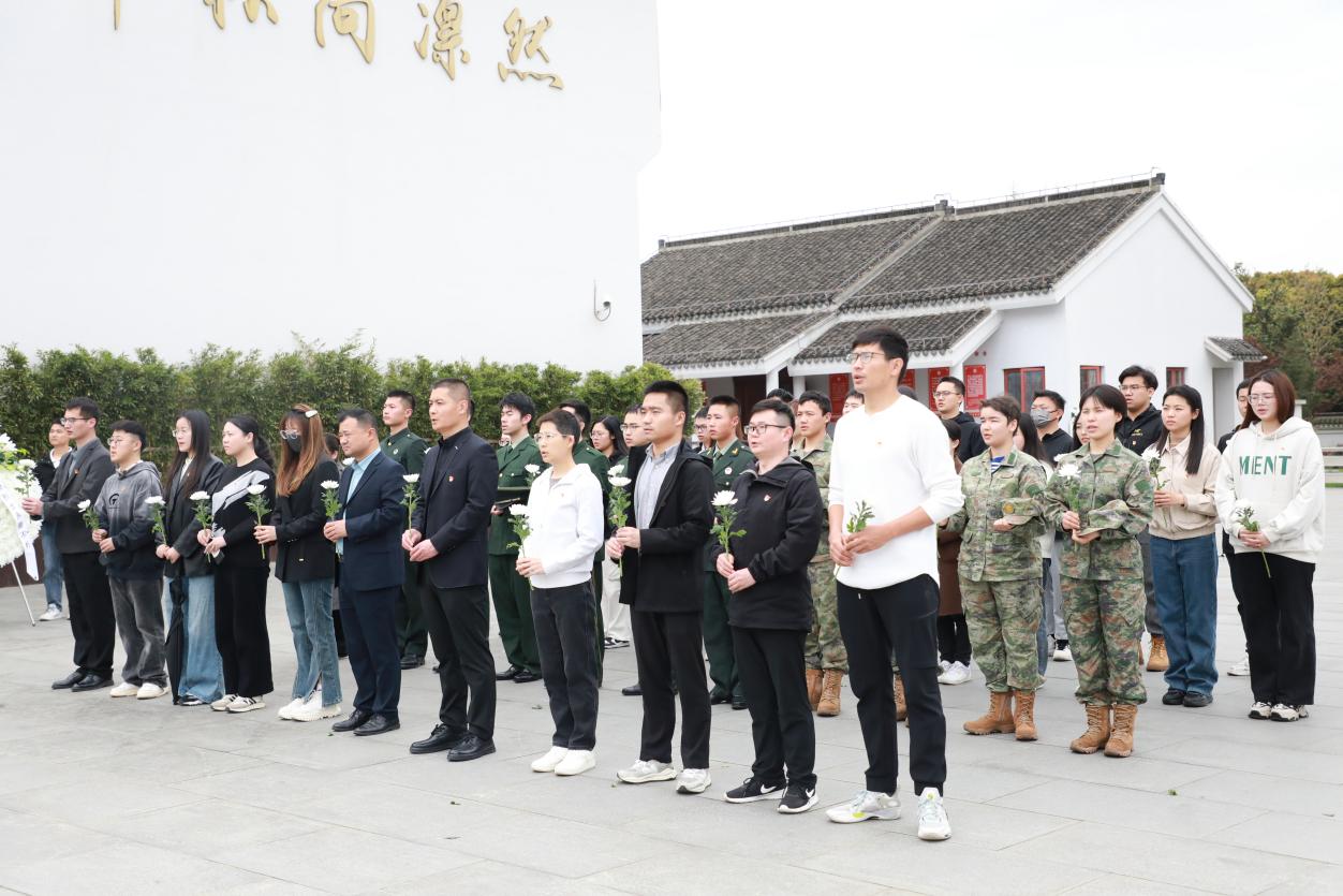 位于青浦区练塘镇的西乡烈士陵园安葬烈士48名,陈展烈士77名。4月2日,学生工作部党支部及相关学生党支部师生党员一行来到西乡烈士陵园开展清明祭扫活动,缅怀革命先烈,传承革命精神。在烈士事迹陈列馆,师生党员跟随讲解员的步伐,逐一了解大革命时期、抗日战争时期、解放战争时期、抗美援朝时期以及当代革命烈士的伟大生平和感人事迹。大家听得认真、看得仔细,在一幅幅珍贵的照片、一段段令人动容的文字中感受英烈精神。随后,大家来到纪念碑前,在庄严的国歌声中开展祭扫活动,全体人员庄严肃穆、鞠躬默哀,并向纪念碑敬献花圈和鲜花,深切表达对革命先烈的崇高敬意和无限哀思。