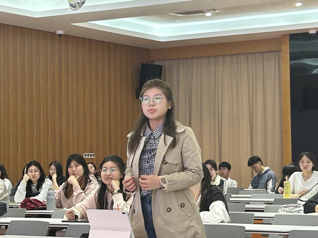 李晚笛同学作为本次赛队庭辩分数最高的选手,从陈述稿撰写、现场陈述发挥、撰写反驳稿等方面分享准备陈述与反驳的经验。她以本次赛题为例,说明如何在比赛前准备问题清单以更好应对庭辩,并鼓励大家要坚定信心、不畏惧口语表达,努力尝试参与到英文模拟法庭中。