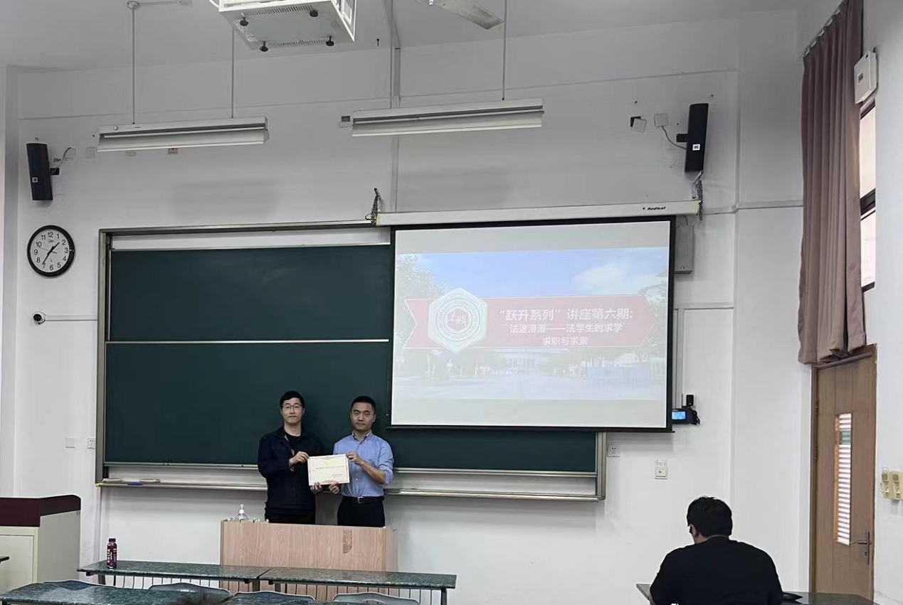 为了深化“跃升计划”学员对于法学专业学习的理解,培养良好的专业学习习惯,汲取法学专业求职经验和技巧,“跃升计划”系列讲座第六期《法学生的求学、求职与求索》于主教117A顺利举行。本次讲座邀请到了我校经济法学院2023届校友、上海市第二中级人民法院法官助理郑一格为学员们带来了一场关于法学学习、求职及人生规划的精彩盛宴。