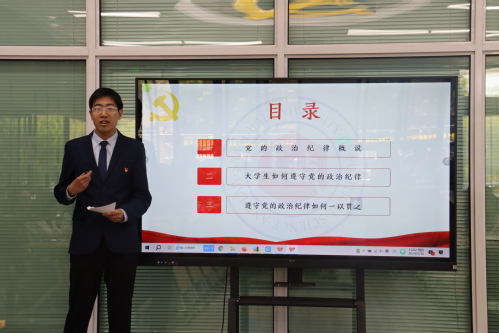 本次党课的主题为“严明政治纪律,坚定理想信念”。侯泽宇围绕“党的政治纪律概说”“大学生如何遵守党的政治纪律”“遵守党的政治纪律如何一以贯之”三个部分展开,结合新修订的《中国共产党纪律处分条例》中与大学生党员关系较为密切的17条内容,阐释了三条遵守政治纪律的方法论原则:“坚持‘四个服从’,做到‘两个维护’”,“坚定共产主义理想信念,自觉与错误思想划清界限”,“增强‘四个意识’、提高‘政治三力’,敢于斗争、善于斗争”。侯泽宇表示,青年人要真正发自内心地产生政治认同,就必须不断加强理论学习,从经典原著和党的历史中汲取力量。