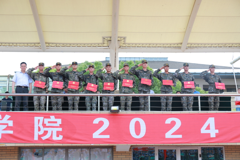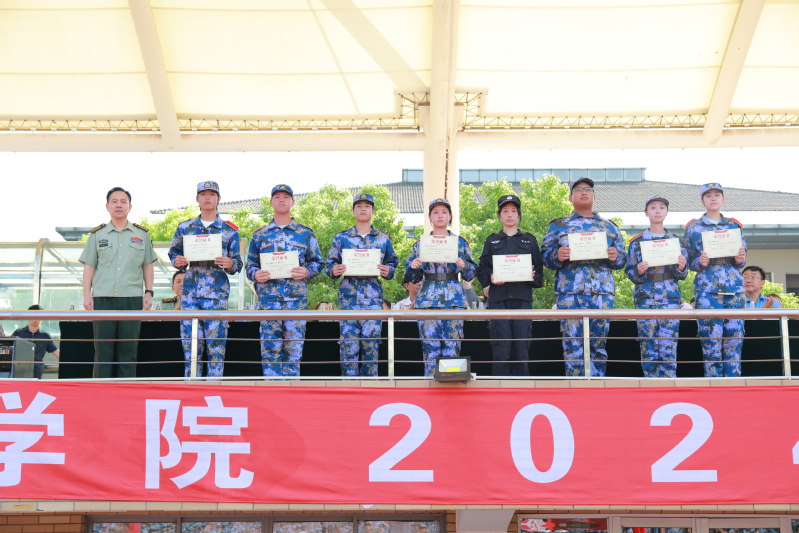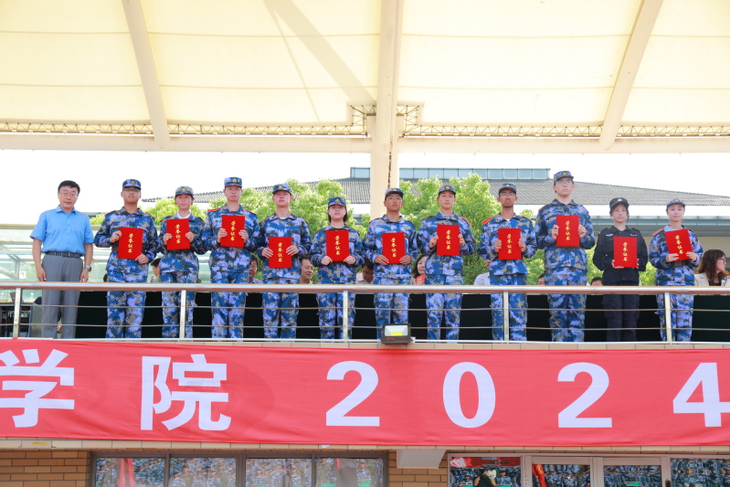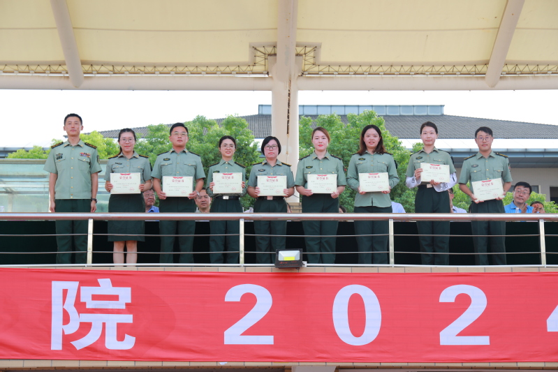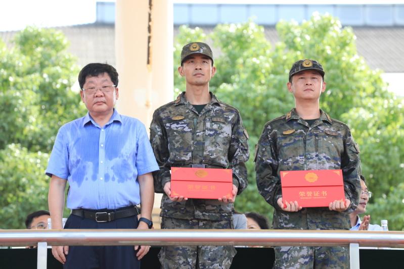 高志刚宣读军训表彰名单。吴军辉颁发军训优胜综合集体证书,郑少华为两位教官颁发突出贡献奖证书,罗立刚颁发优秀教官证书,王戎为优秀副排长(带训辅导员)颁发证书,刘志强颁发军训优秀学员证书,张东霞向军训保障单位颁发感谢状。