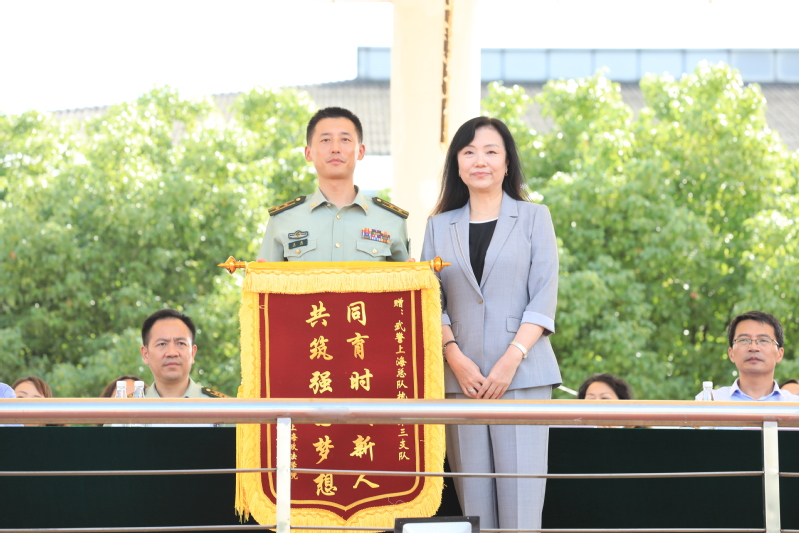 今年学生军训工作中,武警上海总队执勤第三支队克服重重困难,为我校军训顺利实施给予了极大支持。56名承训部队教官每日迎着晨曦来,披着晚霞归,用心用情指导学生军训,帮助学生成长。刘晓红代表学校向武警上海总队执勤第三支队赠送锦旗,向“最可爱的人”表达敬意和感谢。