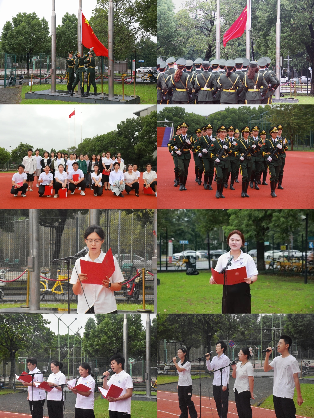 10月1日清晨,学校在田径场隆重举行主题为“青春为中国式现代化挺膺担当——庆祝中华人民共和国成立75周年”升旗仪式,上政学子在飘扬的五星红旗下,通过诗歌朗诵、齐唱红歌的方式展现自己为中国式现代化挺膺担当的决心。