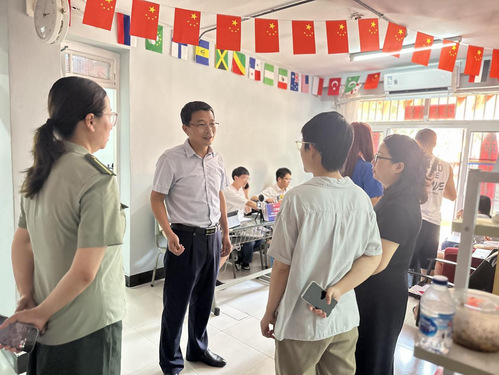 校党委副书记、副校长高志刚亲临留学生报到现场,看望新同学及随行家长,并慰问一线工作人员。高志刚详细询问了新生抵沪后的适应情况,勉励大家珍惜学习机会,充分利用学校资源,努力成长为具有国际视野和社会责任感的优秀人才。他对迎新团队高效、细致、周到的服务给予了高度肯定。