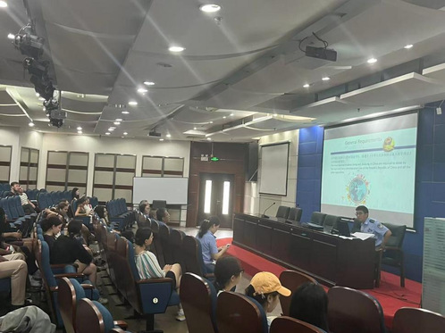 9月9日,活动分为两个阶段:保险公司代表通过线上形式详解留学生保险的参保范围与理赔流程;青浦出入境管理局警官现场解读中国出入境法律法规及签证管理要求,并就实习签证、工作签证等常见问题为留学生答疑解惑。与此同时,夏阳派出所民警主讲的针对留学生的反诈宣讲,通过真实案例增强学生的安全意识和防诈骗能力。宣讲同时,引导全体留学生扫码下载并安装上海警方推荐的“金护”反诈App,进一步加强自我保护,筑牢网络安全防线。