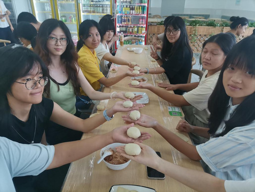 活动现场洋溢着温馨而热烈的节日氛围。食堂工作人员提前准备好丰富的馅料和饼皮材料,并耐心讲解了月饼的制作步骤与技巧。在专业面点师傅的指导下,同学们兴致勃勃地投入到包月饼的实践中。从擀皮、包馅到成型,大家相互协作,细心操作,一道道工序有条不紊。欢声笑语中,一个个饱含心意的手工月饼逐渐摆满了托盘。