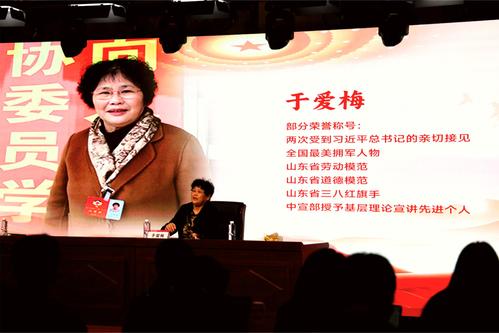 全国“最美拥军人物”、中宣部基层理论宣讲先进个人、沂蒙精神传承促进会会长、“沂蒙红嫂”后代于爱梅深情讲述了“沂蒙红嫂”这一群体的故事,立体展现了革命战争年代沂蒙人民“最后一口粮做军粮,最后一块布做军装,最后一个儿子送战场”的感天动地的奉献精神,生动诠释了“党群同心、军民情深、水乳交融、生死与共”的沂蒙精神本质。从用乳汁救治伤员的“红嫂”明德英,到舍子拥军的“沂蒙母亲”王换于,从冒着生命危险掩护革命后代的“沂蒙六姐妹”,到车轮滚滚的支前队伍,一个个鲜活的故事,一幕幕感人的场景,深深打动了在场的每一位师生,会场多次响起经久不息的掌声。