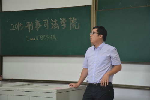 9月9日下午,刑事司法学院团学招新宣讲会在B4-102召开,院党总支副书记徐海琨老师,院团总支书记谢玮洁老师出席了此次会议,而刑事司法学院15级新生也全体到场。