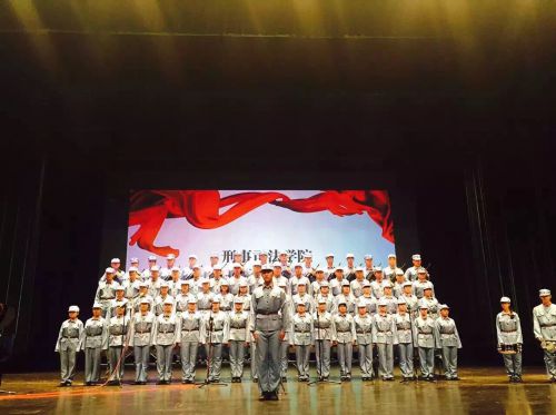 我院合唱团在气势磅礴的视频中上场,一袭八路军军装,一上场就引来了台下的一阵欢呼。随着军鼓鼓点的落下,迅速地立正看齐,有力地踏步,富有刑司特色的表现形式震撼全场。演唱开始,我院合唱团以铿锵有力的音色,节奏与音乐表达获得了评委老师们的一致认可。最终我院在荣获本次合唱比赛二等奖与最佳人气奖。