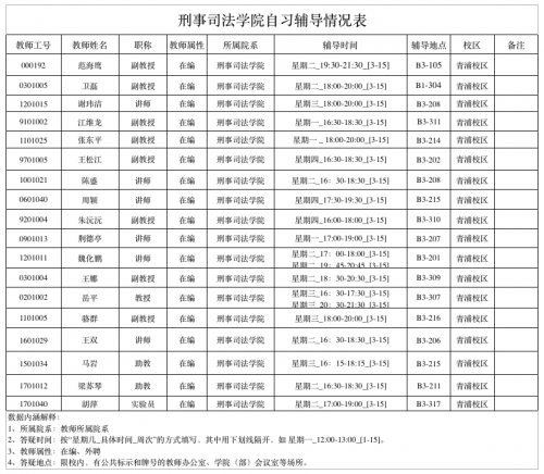 刑事司法学院自习辅导情况表(2017-2018春季学期)