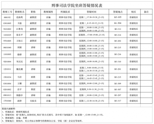刑事司法学院坐班答疑情况表(2017-2018春季学期)