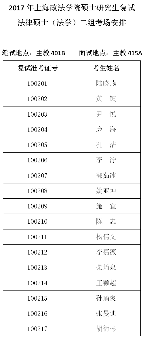 10-2法律硕士(法学)二组考场安排